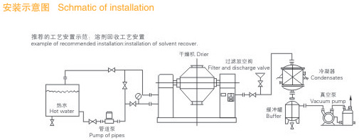 ● 物料處于真空狀態,蒸汽壓下降使物料表面的水份(溶劑)達到飽和狀態而蒸發了,并由真空泵及時排出回收。物料內部的水份(溶劑)不斷的向表面滲透、蒸發、排出,三個過程不斷進行,物料在很短時間內達到干燥目的。