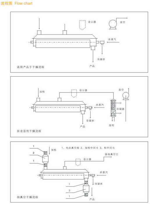 ● 處理物料范圍廣:使用不同熱介質,既可處理熱敏性物料,又可處理需高溫處理的物料。常用介質有:水蒸汽、導熱油、熱水、冷卻水等。既可連續操作也可間歇操作,可在很多領域應用。